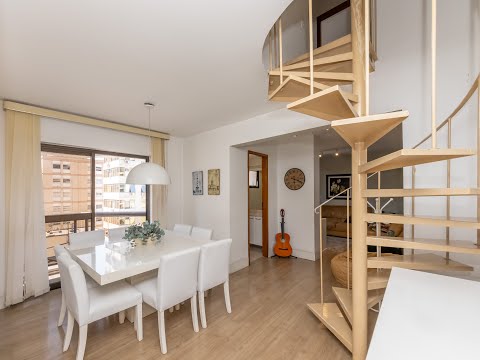 Este sofisticado apartamento, situado no 18º andar, foi projetado para quem valoriza amplitude, conforto e privacidade. O andar inferior conta com cozinha com sacada, sala de jantar e sala de estar, ambas integradas a varandas, além de um lavabo. No andar superior, estão duas suítes, cada uma com sua própria sacada, oferecendo vista para a Avenida Paulista e uma atmosfera acolhedora e iluminada.